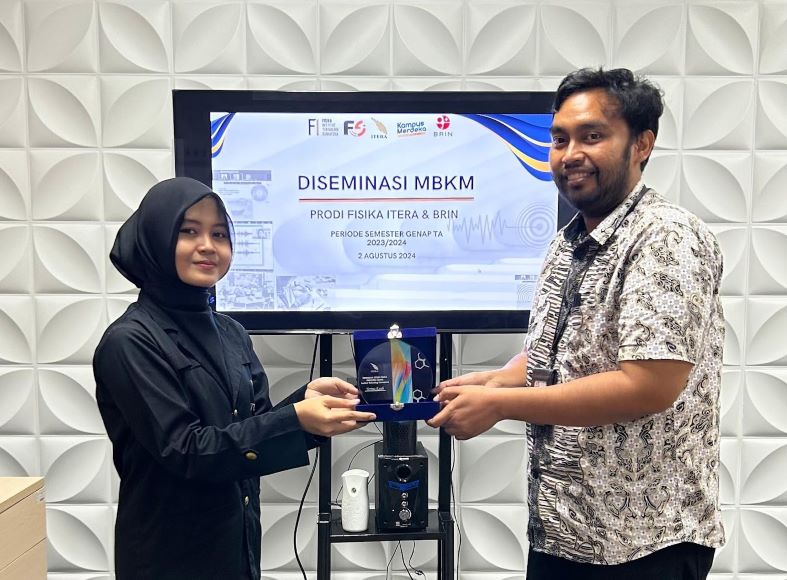 Acara diakhiri dengan penyerahan plakat oleh Program Studi Fisika, yang diwakili oleh salah satu peserta Diseminasi MBKM, Vina Alfionita, kepada Pembimbing Instansi, Fathan Bahfie dari BRIN Tanjung Bintang. Diharapkan, keenam mahasiswa yang telah melakukan diseminasi MBKM ini dapat menjadi contoh bagi mahasiswa Program Studi Fisika untuk aktif dalam mengikuti kegiatan MBKM di masa mendatang.