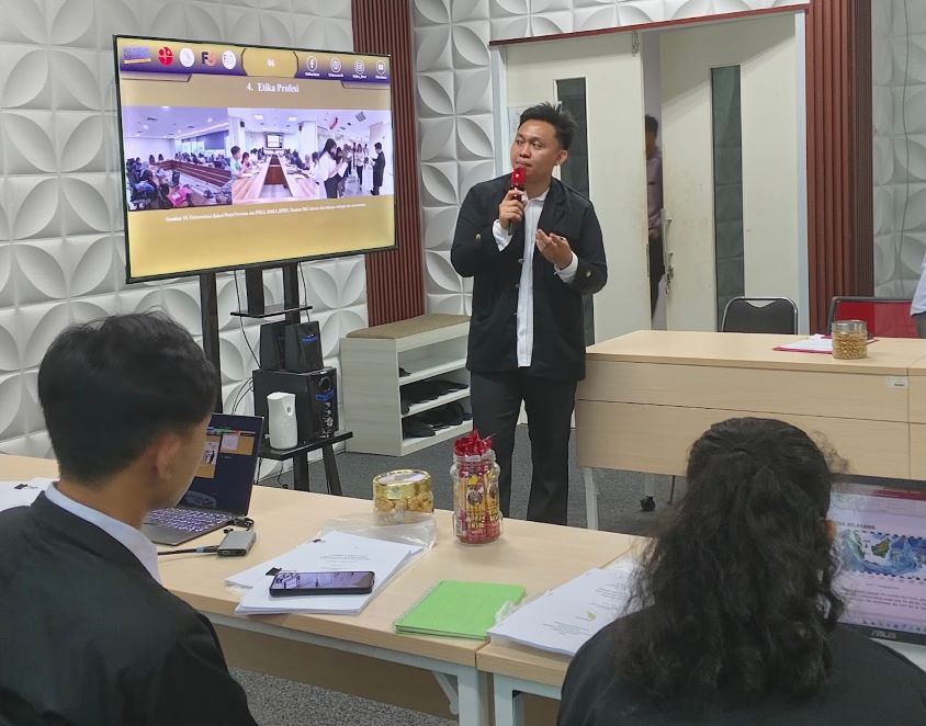 Presentasi yang dilakukan oleh para mahasiswa ini mencakup paparan kegiatan, baik proyek atau penelitian yang telah mereka lakukan. Salah satu penelitian yang menarik perhatian adalah analisis bibliometrik tentang penelitian Agent-Based Modeling (ABM) dengan studi kasus gempa bumi di Indonesia yang dilakukan oleh Septria Muhammad Uzer. Penelitian ini diakui oleh salah satu pembimbing instansi dari BRIN KST BJ Habibie Serpong, Dr. Andy Eka Sakya, sebagai penelitian yang belum pernah dilakukan di Indonesia terkait metode ABM. Setelah presentasi, kegiatan dilanjutkan dengan sesi diskusi dan tanggapan dari dosen pembimbing dan penguji. Hasil diskusi ini menjadi acuan penilaian untuk ekuivalensi hasil kegiatan ke mata kuliah yang diambil.