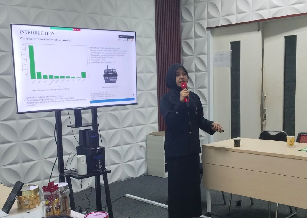 Sebanyak enam mahasiswa Program Studi Fisika melakukan presentasi, yaitu Septria Muhammad Uzer dan Jessica Violina, yang melaksanakan kegiatan MBKM di Pusat Riset Kebencanaan Geologi BRIN KST BJ Habibie Serpong; Alfina Damayanti dan Nurlindaram, yang melaksanakan kegiatan MBKM di Pusat Riset Kebencanaan Geologi BRIN KST Samaun Samadikun Bandung; Vina Alfionita, yang melaksanakan kegiatan MBKM di Pusat Riset Teknologi Pertambangan BRIN Tanjung Bintang; dan Riki Muhammad, yang melaksanakan kegiatan MBKM di Pusat Riset Elektronika BRIN Bandung.