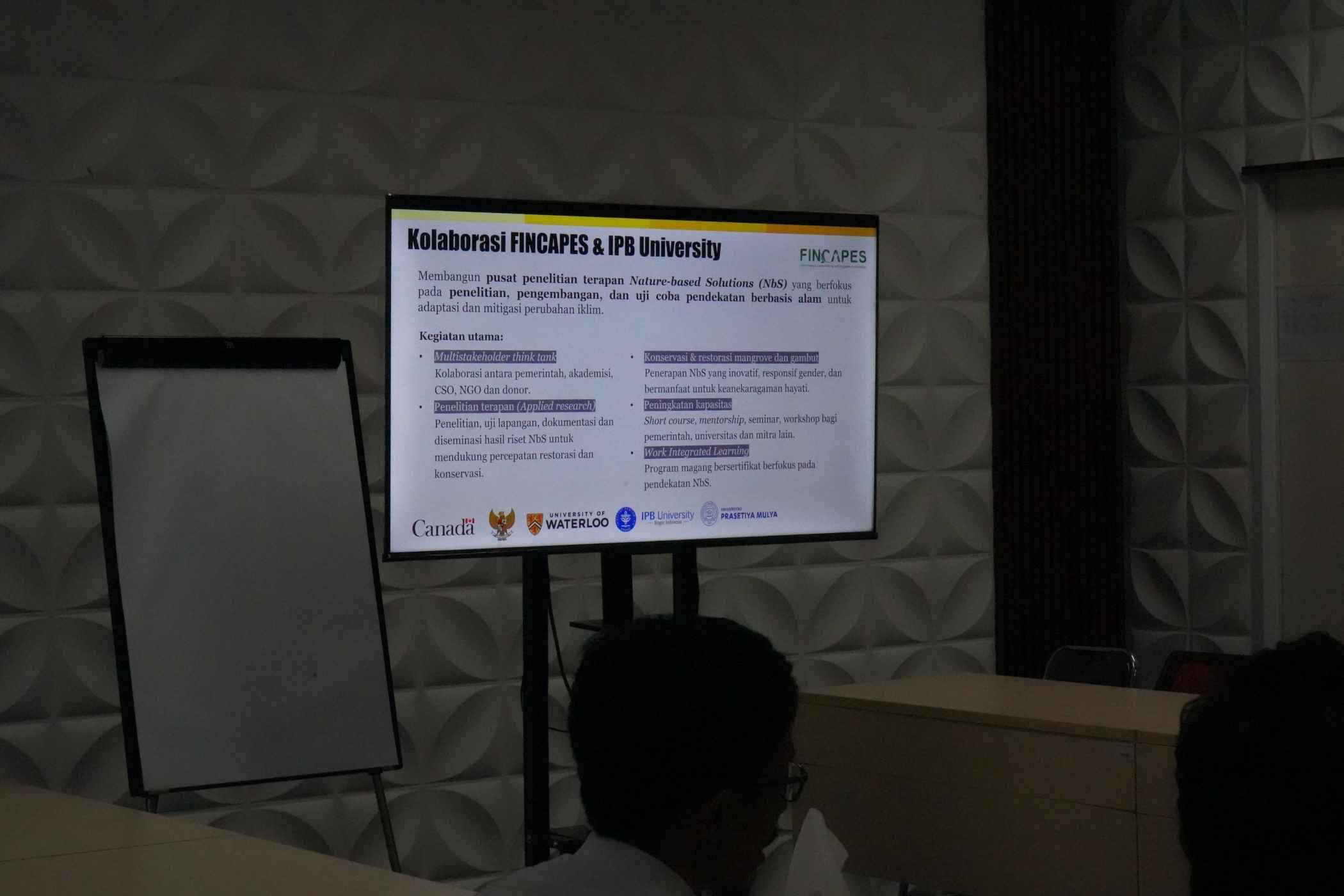 Pada pertemuan tersebut, Ibu Azmi menjelaskan tujuan dari Proyek FINCAPES, yang berfokus pada Dampak Banjir, Penentuan Harga Karbon, dan Keberlanjutan Ekosistem. Inisiatif multi-pihak ini bertujuan untuk membantu Indonesia dalam adaptasi dan mitigasi perubahan iklim sambil menjaga keberagaman hayati secara berkelanjutan di berbagai aspek sosial dan ekonomi. Proyek FINCAPES berlangsung selama 5.5 tahun, dimulai dari Februari 2023 hingga Juli 2028. Pendanaan untuk proyek ini mencapai $15,000,000 CAD dari Global Affairs Canada (GAC) bersama dengan sumbangan sebesar $750,000 CAD dari Universitas Prasetiya Mulya. Kolaborasi antardisiplin menjadi ciri khas proyek ini, dengan melibatkan Fakultas Matematika dan Lingkungan dari Universitas Waterloo. Kemitraan utamanya terjalin dengan Universitas IPB dan Universitas Prasetiya Mulya.