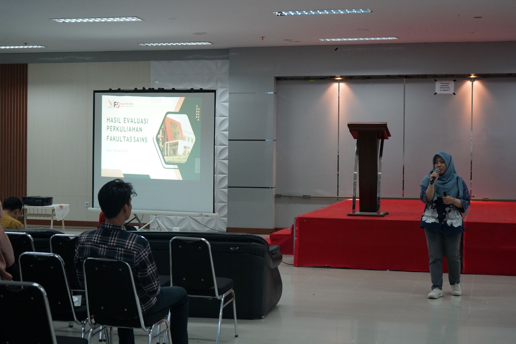 Fakultas Sains Institut Teknologi Sumatera (Itera) melaksanakan Monitoring dan Evaluasi Perkuliahan Semester Ganjil Tahun Akademik 2024/2025 pada Jumat, 24 Januari 2025 di Aula F Itera. Turut hadir dalam acara tersebut Dekan Fakultas Sains, Dr. Ikah Ning P. Permanasari, M.Si, Wakil Dekan Bidang Akademik dan Kemahasiswaan, Dr. Sri Efrinita Irwan, S.Si., M.Si., Wakil Dekan Bidang Keuangan dan Umum apt. Dirga, S.Farm., M.Sc., serta seluruh dosen dari program studi di Fakultas Sains Itera.