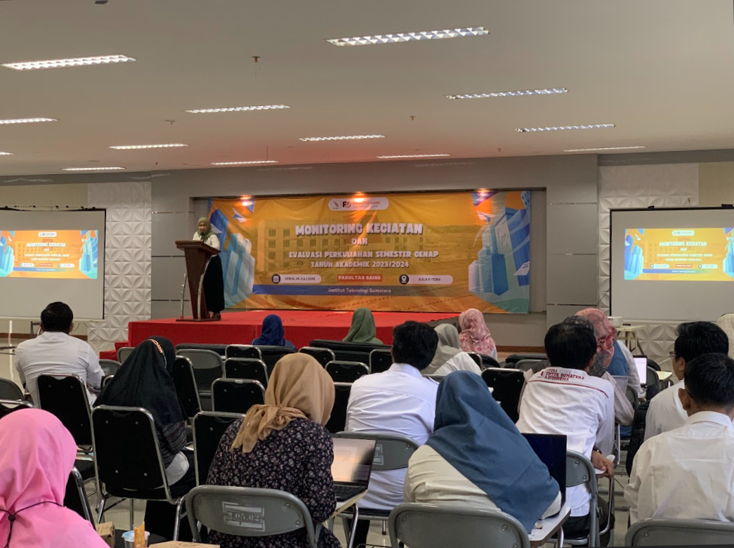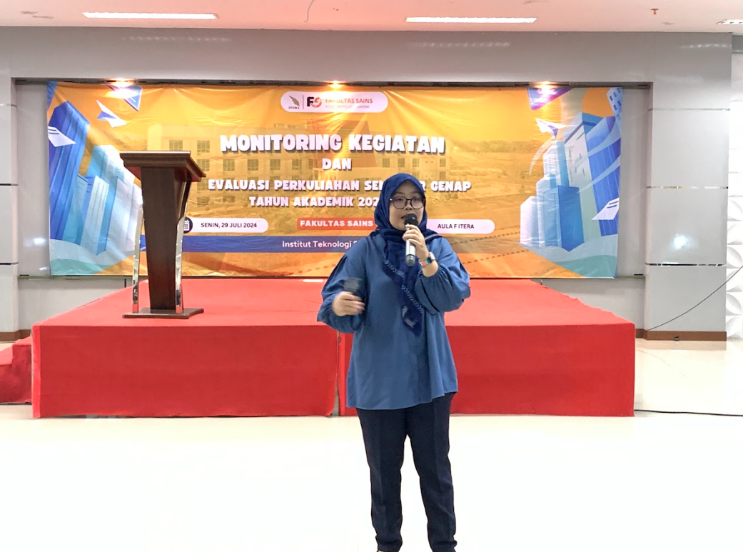 Fakultas Sains Institut Teknologi Sumatera (Itera) menggelar acara Monitoring Kegiatan dan Evaluasi Perkuliahan Semester Genap Tahun Akademik 2023/2024 pada Senin, 29 Juli 2024 di Aula F Itera. Turut hadir dalam acara tersebut Dekan Fakultas Sains, Dr. Ikah Ning P. Permanasari, M.Si, Wakil Dekan Bidang Akademik dan Kemahasiswaan, Dr. Sri Efrinita Irwan, S.Si., M.Si., Wakil Dekan Bidang Keuangan dan Umum apt. Dirga, S.Farm., M.Sc., serta seluruh dosen dari program studi di Fakultas Sains Itera.