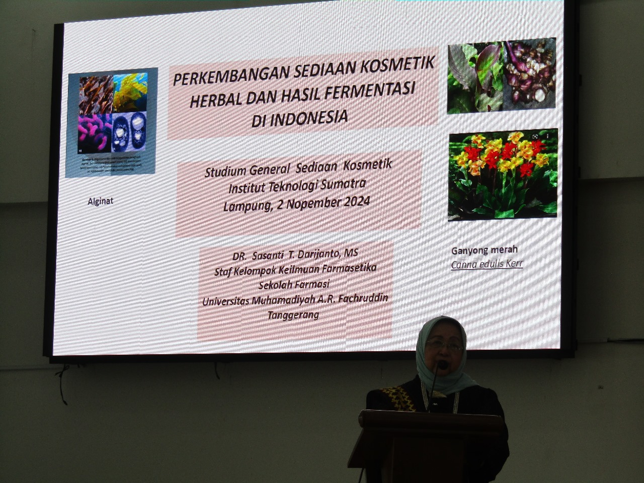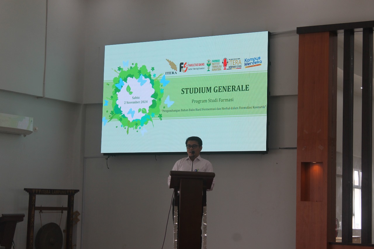 Program Studi Farmasi Institut Teknologi Sumatera (ITERA) menggelar acara Studium Generale (SG) yang dilaksanakan secara luring pada Aula Gedung Kuliah Umum (GKU 2) ITERA, hari Sabtu, 2 November 2024 dengan tema kali ini yaitu “Perkembangan Sediaan Kosmetik Herbal dan Hasil Fermentasi di Indonesia” yang diikuti secara seksama dengan peserta sejumlah 240 orang. Acara merupakan bagian dari mata kuliah yang diikuti setiap semesternya.