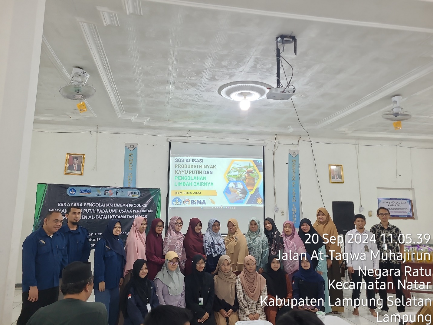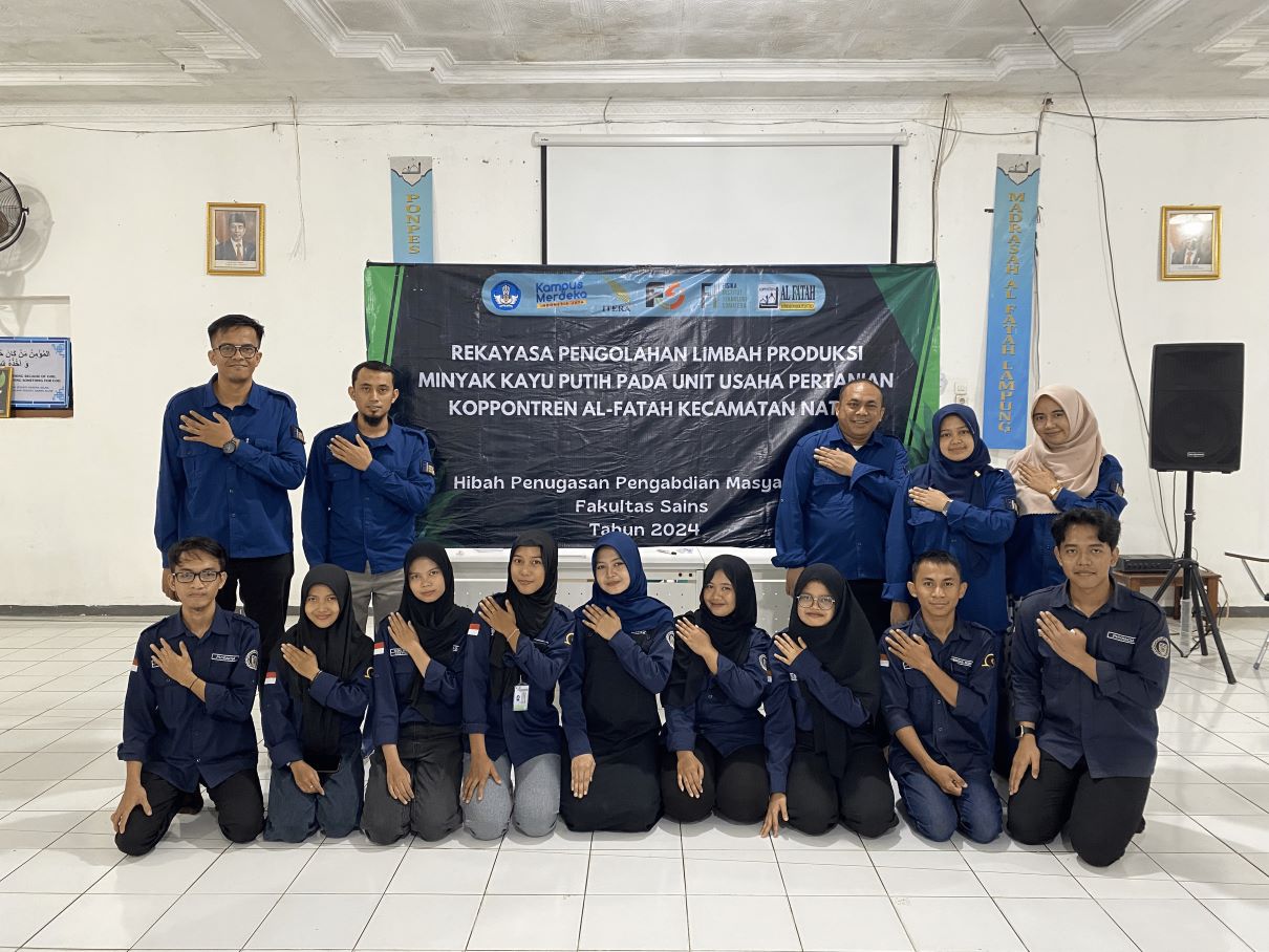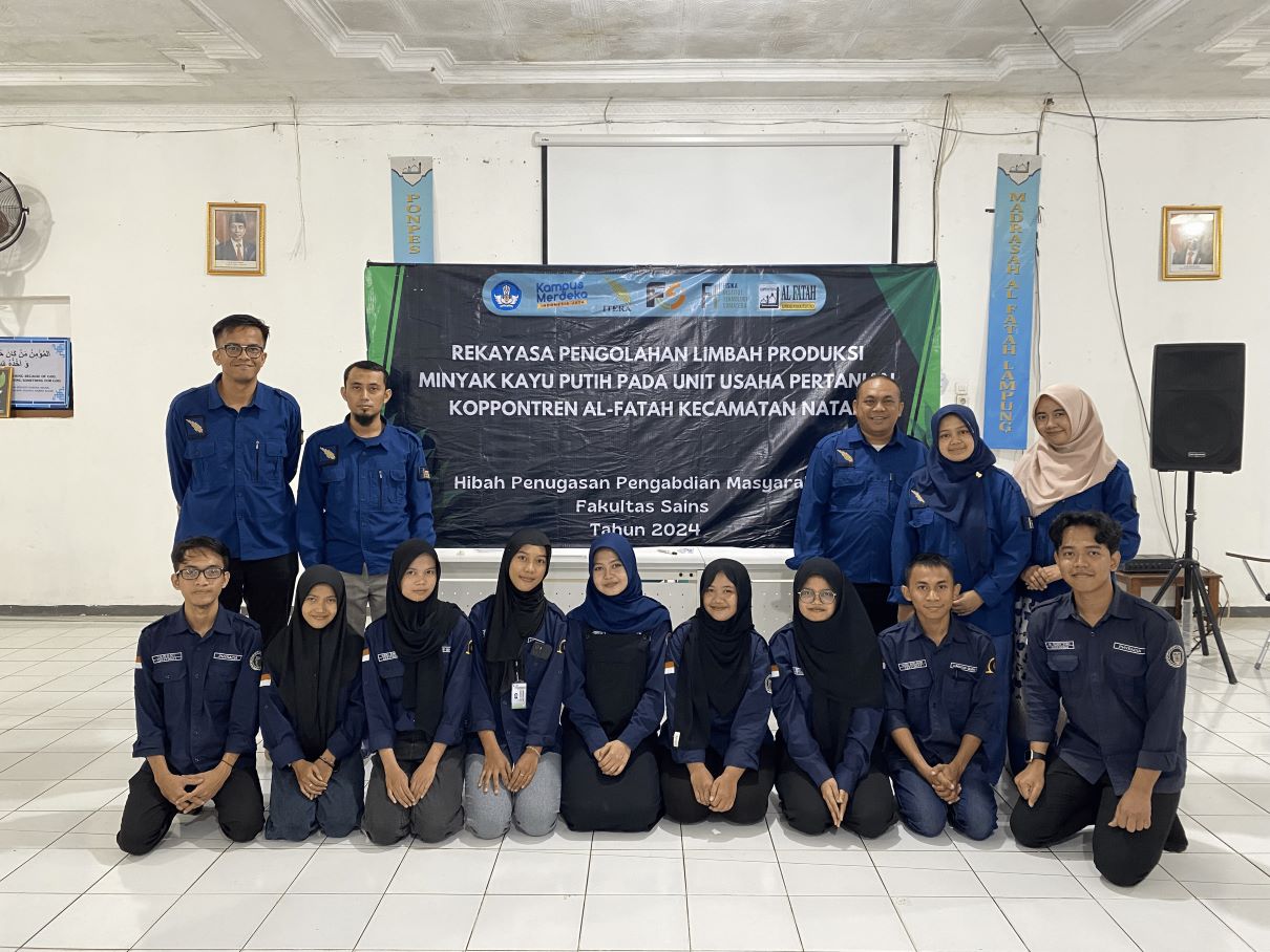 Program Studi Fisika Fakultas Sains Institut Teknologi Sumatera (Itera) menggelar kegiatan Pengabdian kepada Masyarakat (PkM) di Koperasi Pondok Pesantren (KOPPONTREN) Al-Fatah pada Jumat, 20 September 2024. Kegiatan ini bertujuan untuk memberikan solusi atas permasalahan limbah produksi minyak kayu putih melalui inovasi teknologi pengolahan limbah yang berkelanjutan.