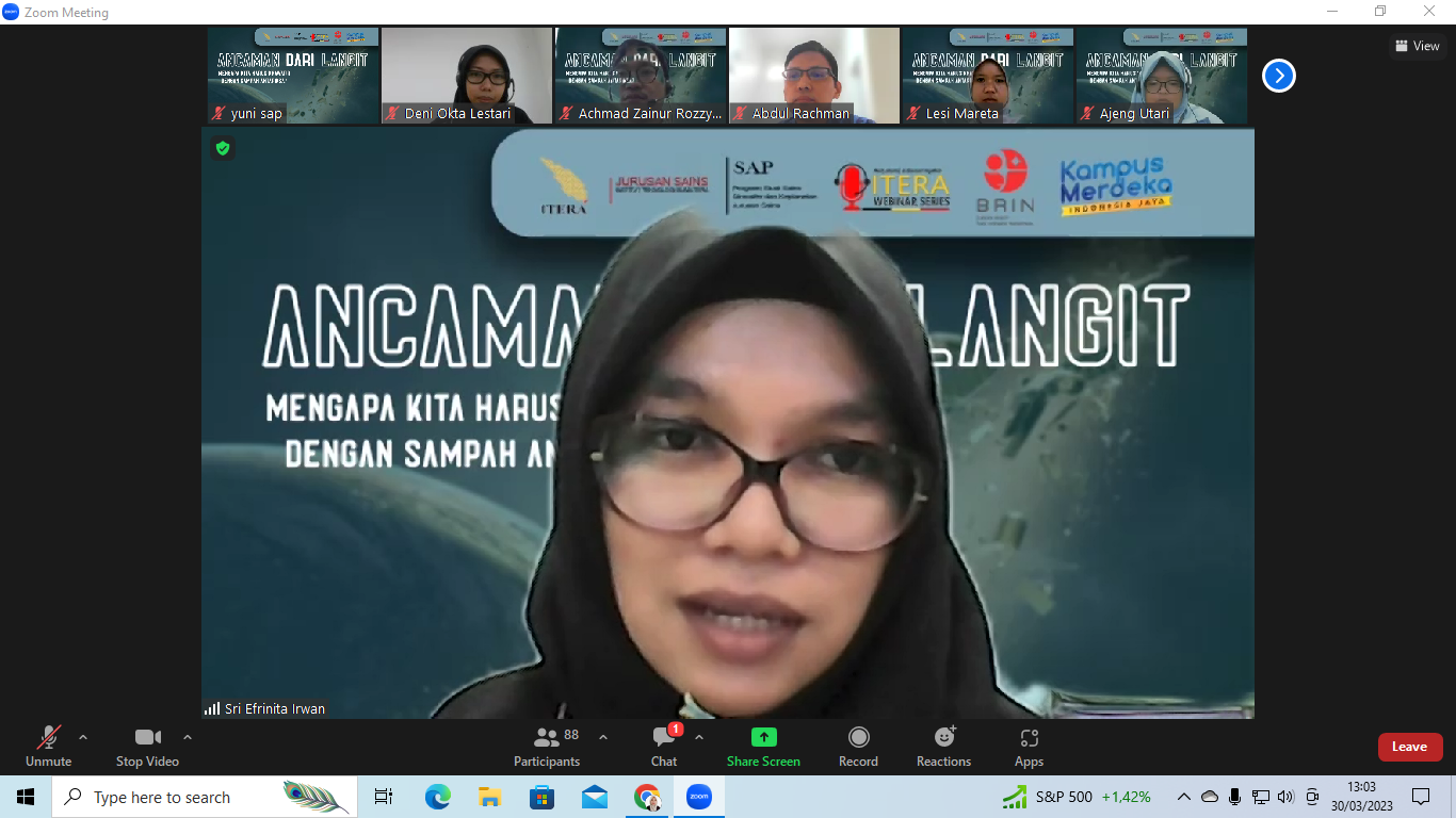 Program Studi Sains Atmosfer dan Keplanetan (SAP) Institut Teknologi Sumatera (ITERA) menyelenggarakan Studium Generale seri ke-3 secara daring melalui kanal zoom dengan tema “Ancaman dari Langit: Mengapa Kita Harus Khawatir dengan Sampah Antariksa?”, Kamis, 30 Maret 2023.