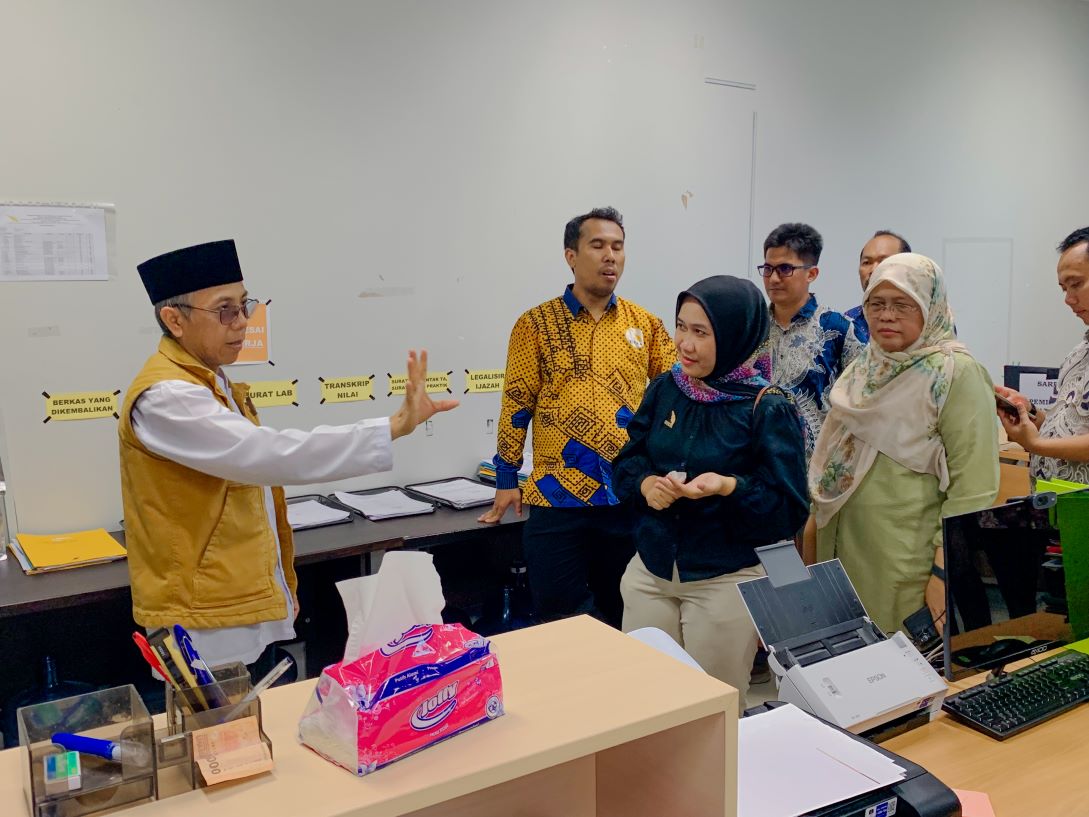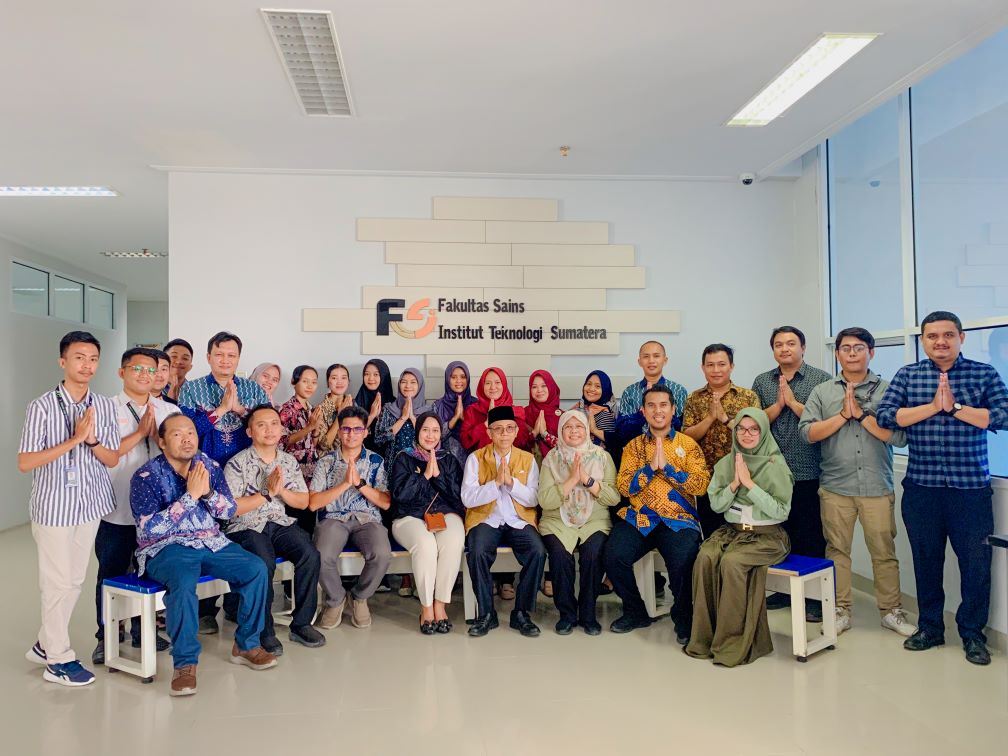 Dekan Fakultas Sains Dr. Ikah Ning Prasetiowati Permanasari, M.Si., serta Wakil Dekan Bidang Akademik dan Kemahasiswaan Fakultas Sains Dr. Sri Efrinita Irwan, S.Si., M.Si., menyambut hangat Rektor Institut Teknologi Sumatera (Itera) Prof. Dr. I Nyoman Pugeg Aryantha, yang turut didampingi oleh para pejabat tinggi lainnya seperti Kepala Biro Akademik, Perencanaan, dan Umum, drh. Sri Sulistiawati, M.M., Dekan Fakultas Teknologi Infrastruktur dan Kewilayahan, Arif Rohman, S.T., M.T., Ph.D (Can), serta Dekan Fakultas Teknologi Industri, Hadi Teguh Yudistira, S.T., Ph.D. Tak lupa, hadir pula Ketua Satuan Pengawas Internal, Dr. Eka Nurfani, Kepala Bagian Akademik dan Umum, Pujiono, S.Sos. M.M., dan tim Kesekretariatan serta Humas Institut Teknologi Sumatera.