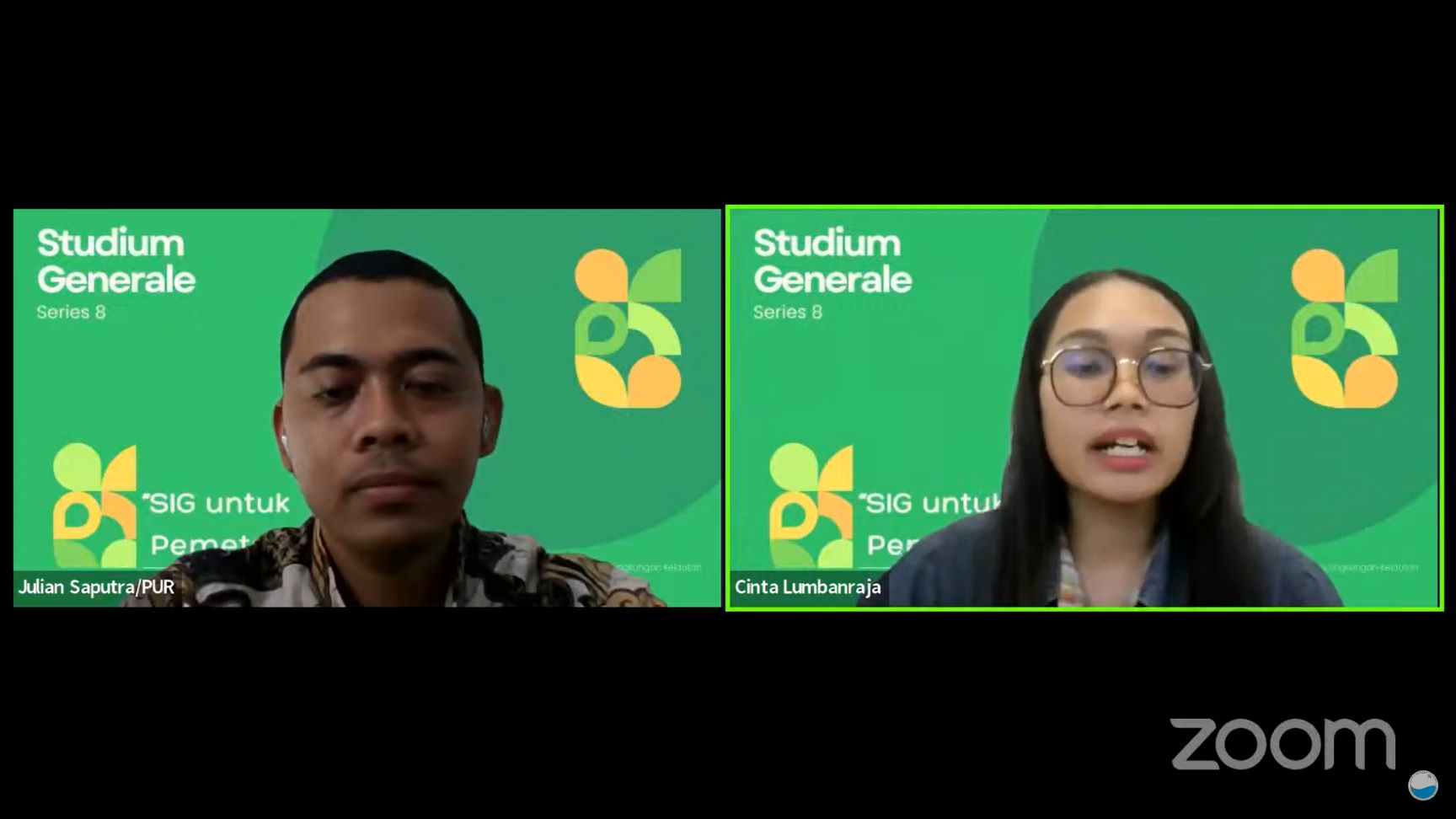 Julian Saputra, S.Kel., M.Si., memaparkan materi terkait SIG untuk pemetaan mangrove dengan bahasan utama yaitu penjelasan apa itu mangrove, penjelasan dasar penginderaan jauh untuk mangrove, pengolahan data dan klasifikasinya, serta penggunaan drone untuk kebutuhan pengamatan mangrove. Di mana bahasan ini akan mendorong perubahan secara besar bidang-bidang agroforestri dan reforestasi, konservasi hutan, pertanian, restorasi pesisir, dan pengembangan potensi pesisir untuk mulai digitalisasi. Vegetasi mangrove umumnya dipetakan menggunakan NDVI untuk melihat indeks kehijauan suatu vegetasi, di mana didasarkan oleh zat hijau daun (klorofil). Dengan indeks 1 untuk vegetasi hingga -1 untuk non vegetasi. Sebelumnya Julian Saputra, S.Kel., M.Si., juga membantu meluruskan karena banyak orang salah tanggap bahwasannya bakau adalah mangrove, akan tetapi mangrove adalah suatu ekosistem yang besar di mana salah satunya terdapat jenis bakau.