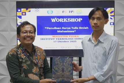 Lampung Selatan, 17 Oktober 2025 — Program Studi Magister Fisika, Fakultas Sains, Institut Teknologi Sumatera (ITERA) menyelenggarakan Workshop Penulisan Karya Tulis Ilmiah Mahasiswa secara luring di Ruang F102, Gedung F Lantai 1 ITERA. Kegiatan ini bertujuan untuk meningkatkan kemampuan mahasiswa dalam menulis karya tulis ilmiah yang sistematis, argumentatif, dan sesuai kaidah akademik.Workshop ini menghadirkan narasumber Prof. Drs. Posman Manurung, M.Si., Ph.D., dosen Fisika dari Universitas Lampung (UNILA), dan dimoderatori oleh Indra Pardede, Ph.D. Acara dibuka secara resmi oleh Koordinator Program Studi Magister Fisika ITERA, Dr. Agustina Widyani, S.Si., M.Si., yang dalam sambutannya menyampaikan apresiasi atas kehadiran narasumber serta antusiasme para peserta.