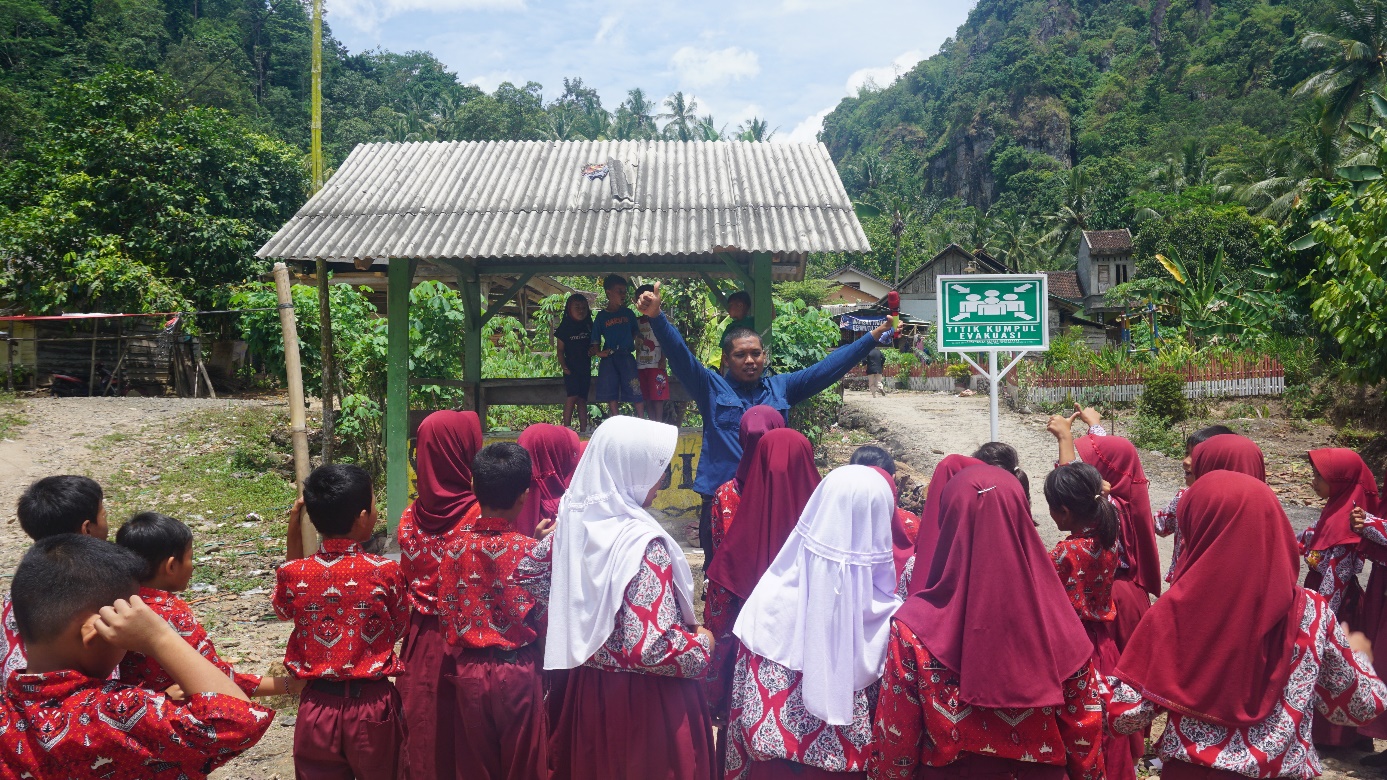 Aspek praktis menjadi inti dari kegiatan ini. Tim kemudian memimpin simulasi evakuasi mandiri gempa bumi yang realistis, teknik “Merunduk (Drop), Berlindung (Cover), dan Bertahan (Hold On)” memberikan kesempatan bagi siswa dan guru untuk mempraktikkan prosedur penyelamatan diri secara langsung. Sebagai luaran nyata kegiatan, dilakukan pula pemasangan plang rute evakuasi dan papan informasi waspada bencana gempa bumi dan longsor sebagai sarana penunjuk arah yang jelas di lingkungan sekolah dan sekitarnya, serta pembagian Brosur Panduan Mitigasi Bencana kepada seluruh siswa, guru, dan masyarakat.
